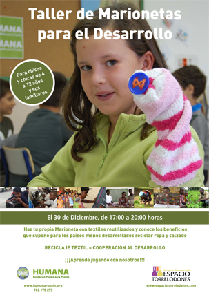 Durante las Navidades el Departamento de Educación para el Desarrollo no ha parado. Todo lo contrario: ha aprovechado para llevar a cabo del 27 al 30 de diciembre un ciclo de talleres de ‘Marionetas para el Desarrollo’ en diversos centros comerciales de la Comunidad de Madrid por los que han pasado cerca de un centenar de personas, entre niños y niñas de 4 a 12 años y sus familiares.