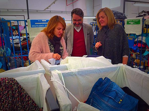 Iglesias y López-Varela conocieron con todo detalle el proceso de clasificación de ropa y calzado usados que se lleva a cabo en la planta, en el que se combinan el trabajo de un equipo especializado con los medios técnicos apropiados.